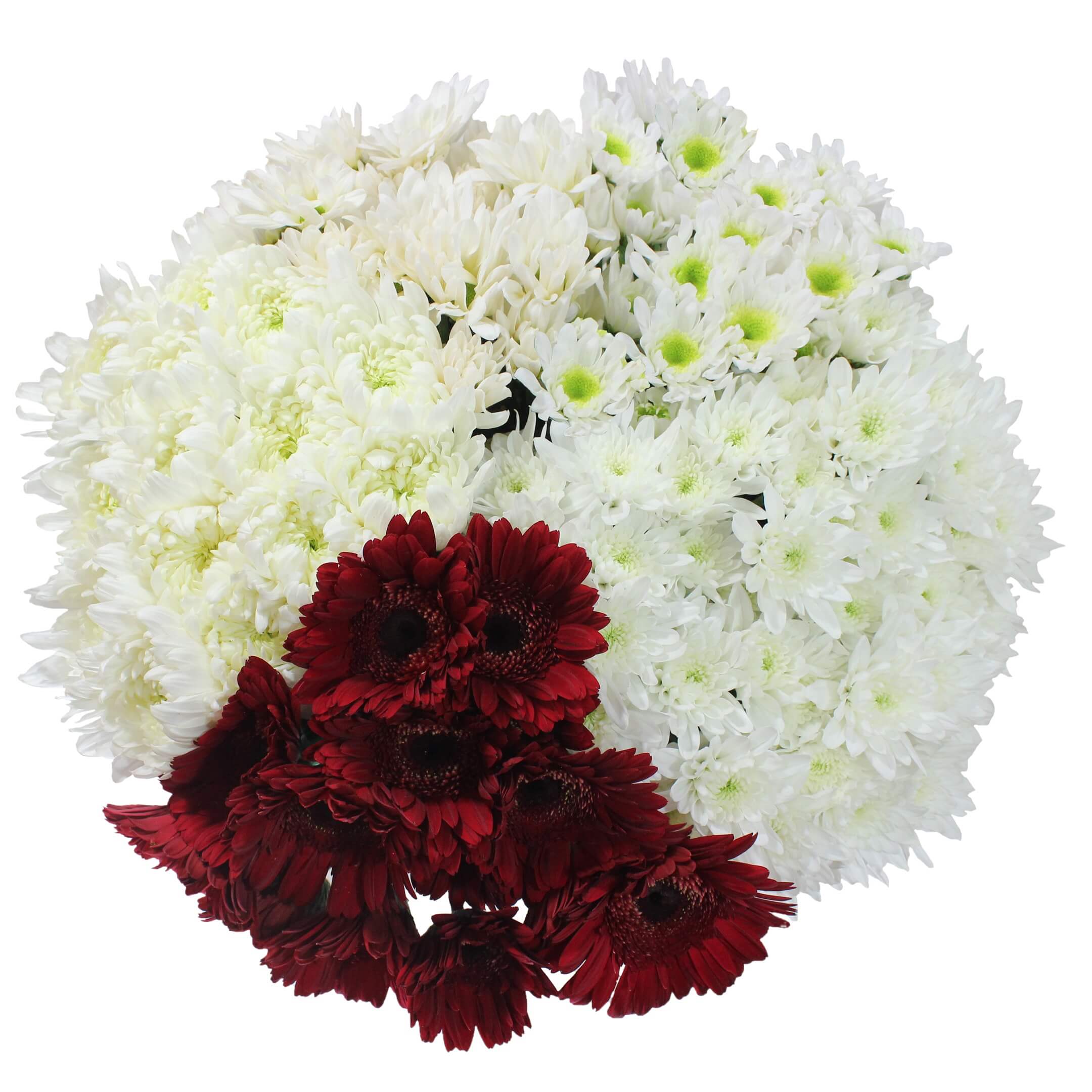 All Bunches 7 stems/Clear sleeve/Flower Food/UPC, 1 Bunch Cushion, 1 Bunch Daisy, 1 Bunch Novelty/Micropoms/Button Poms, 2 Bunch Disbud, 2 Bunches Gerberas.