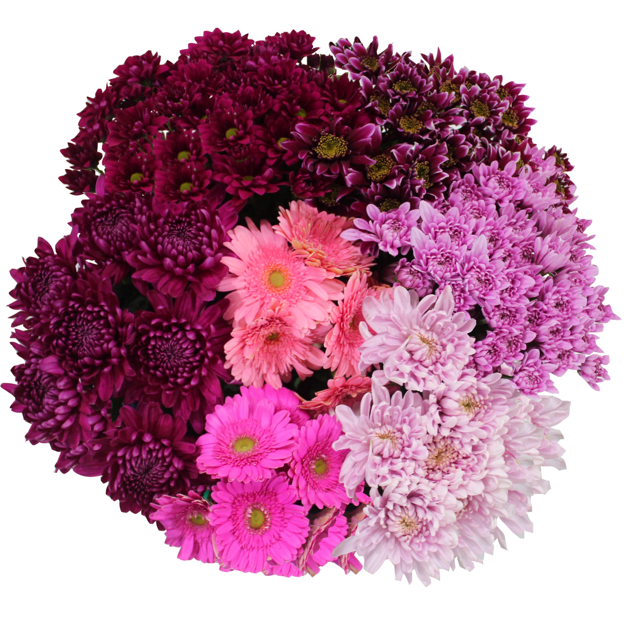 All Bunches 7 stems/Clear sleeve/Flower Food/UPC, 1 Bunch Cushion, 1 Bunch Daisy, 1 Bunch Novelty/Micropoms/Button Poms, 2 Bunch Disbud, 2 Bunches Gerberas.