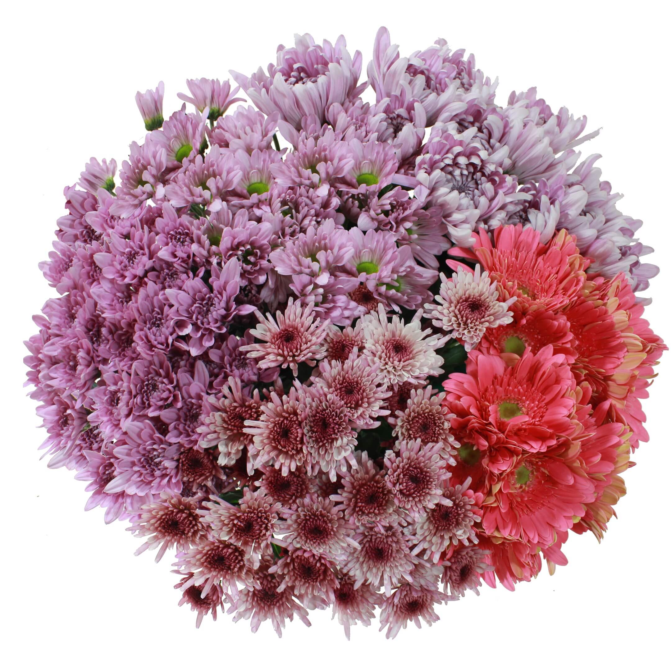 All Bunches 7 stems/Clear sleeve/Flower Food/UPC, 1 Bunch cushion, 1 Bunch Daisy, 1 Bunch Novelty/Micropoms/Button Poms, 2 Bunch Disbud, 2 Bunches Gerberas