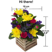 Your order will include a box of 2 or 9 assorted arrangements with the color combinations/seasonal colors on the pictures above.