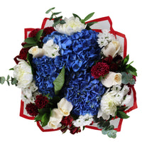 3 Kale/Hydrangea/Lilies, 5 Roses, 3 Spray Roses, 3 Disbud, 5 Micropoms/Button Poms, 3 Alstroemeria/Matsumoto, 4 Premium Green, 5 Ruscus, 3 Cocculus, Clear sleeve+Wrap+UPC+Flower Food