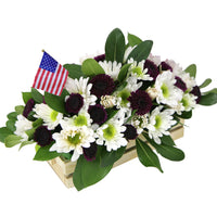 12 Cushion/Daisy/12 Novelty Poms/12 Novelty/Micro/Button Poms, 1 Seasonal Pick, 20 Ruscus, Special Artisan Wood Container, Green Plastic Wrap.